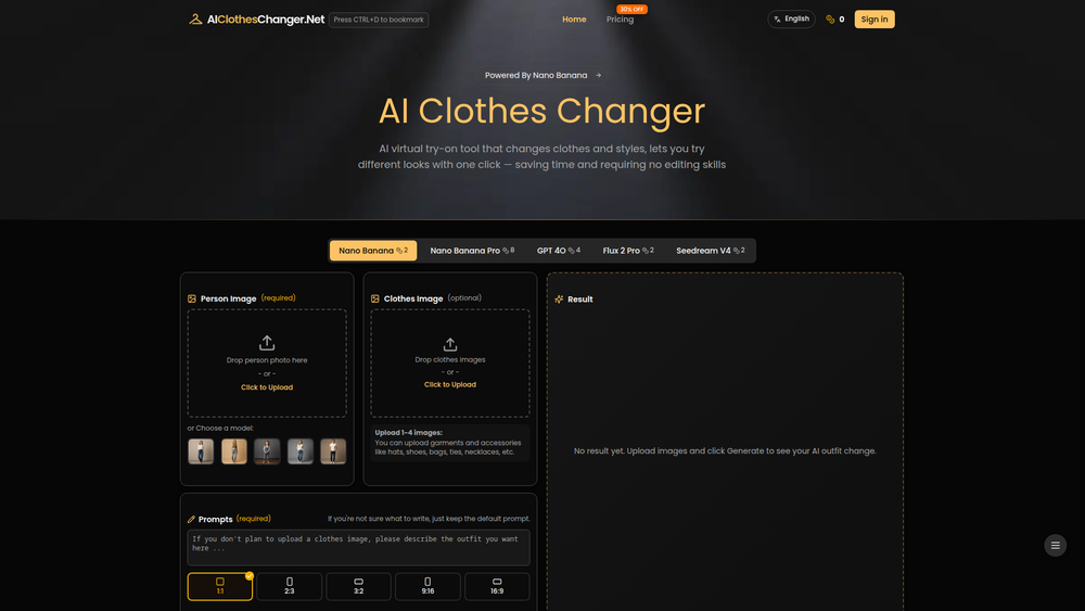 - Multiple AI Model Support: Choose from a variety of advanced AI engines, including Nano Banana (Pro), GPT-4o, Flux, and Seedream, to achieve different artistic styles and levels of realism in your virtual try-ons.
