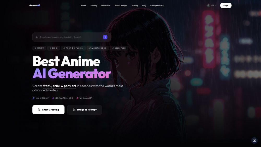 AnimeAI- is a specialized generative platform designed for creators, artists, and anime enthusiasts who need high-fidelity illustrations without the steep learning curve of local Stable Diffusion setups. It bridges the gap between complex prompt engineering and instant creative output, offering a suite of fine-tuned models like Animagine XL and Pony Diffusion to ensure stylistic accuracy. The tool is particularly effective for those looking to replicate specific sub-genres of anime, from the soft, watercolor textures of Studio Ghibli to the high-contrast, neon-soaked aesthetics of Cyberpunk.