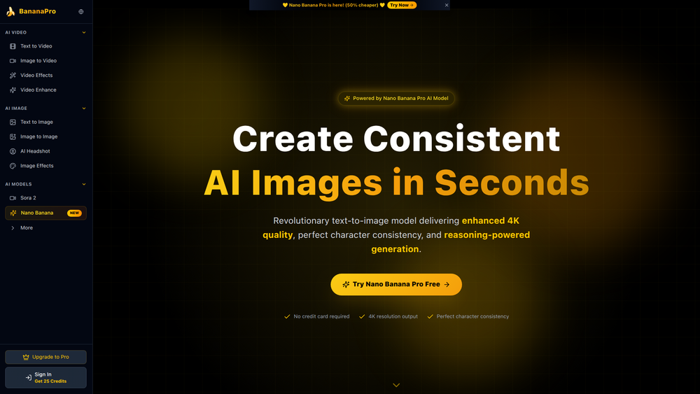 BananaPro is a revolutionary AI platform designed for generating ultra-high-quality 4K images and videos with an emphasis on perfect character consistency. Powered by the advanced Nano Banana Pro AI model, it combines sophisticated reasoning capabilities with superior visual output, allowing creators to produce professional-grade visuals in seconds. The platform is engineered to understand complex, nuanced prompts and maintain the identity of a character across an unlimited number of scenes, poses, and styles, making it an invaluable tool for a wide range of creative professionals.