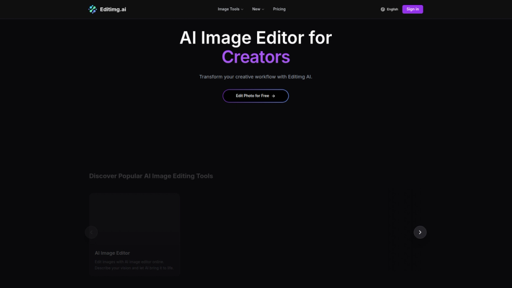 Editimg AI is a powerful and versatile online image editor that leverages artificial intelligence to provide a comprehensive suite of tools for transforming, enhancing, and generating images. Designed for both casual users and professionals, it simplifies complex editing tasks, making high-quality image manipulation accessible to everyone without the need for expensive software or technical expertise. Whether you're looking to remove unwanted objects, change backgrounds, upscale low-resolution photos, or apply creative AI-powered effects, Editimg AI offers a one-stop solution.