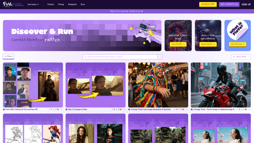 - Enterprise & Team Collaboration: Built for teams, Floyo offers features for sharing workflows, managing assets, and ensuring consistent output across an organization.
