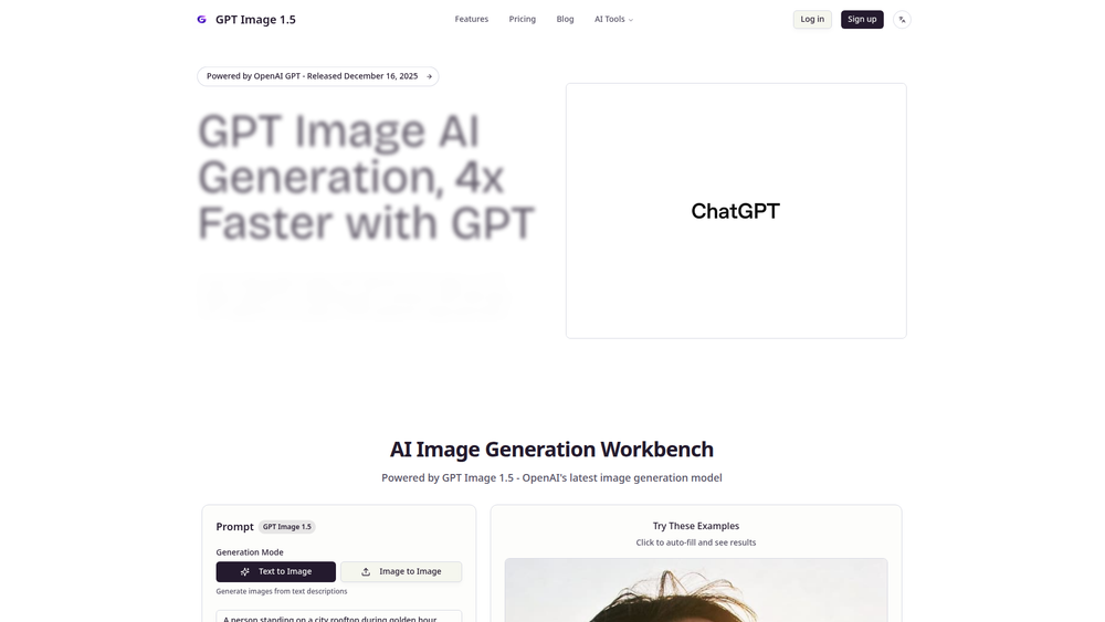 GPT Image 1.5 is a revolutionary AI image generation model from OpenAI, designed to create studio-grade visuals with remarkable speed and efficiency. It empowers users to transform text descriptions or existing images into high-quality, photorealistic graphics. The platform is engineered to be 4 times faster and 20% more cost-effective than previous solutions, making professional-level image creation more accessible than ever before.