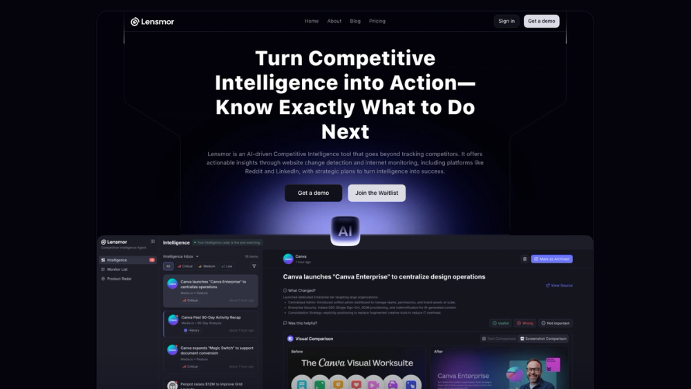 The primary value of Lensmor lies in its ability to transform raw data into actionable strategic insights. Instead of just reporting that a competitor launched a new feature, its AI analyzes user reactions and sentiment from community forums to determine if the feature is a success or a failure. This intelligence is delivered in concise briefs tailored for product, marketing, and sales teams, enabling them to make data-driven decisions, build smarter roadmaps, and gain a significant competitive edge without wasting valuable resources on failed experiments.