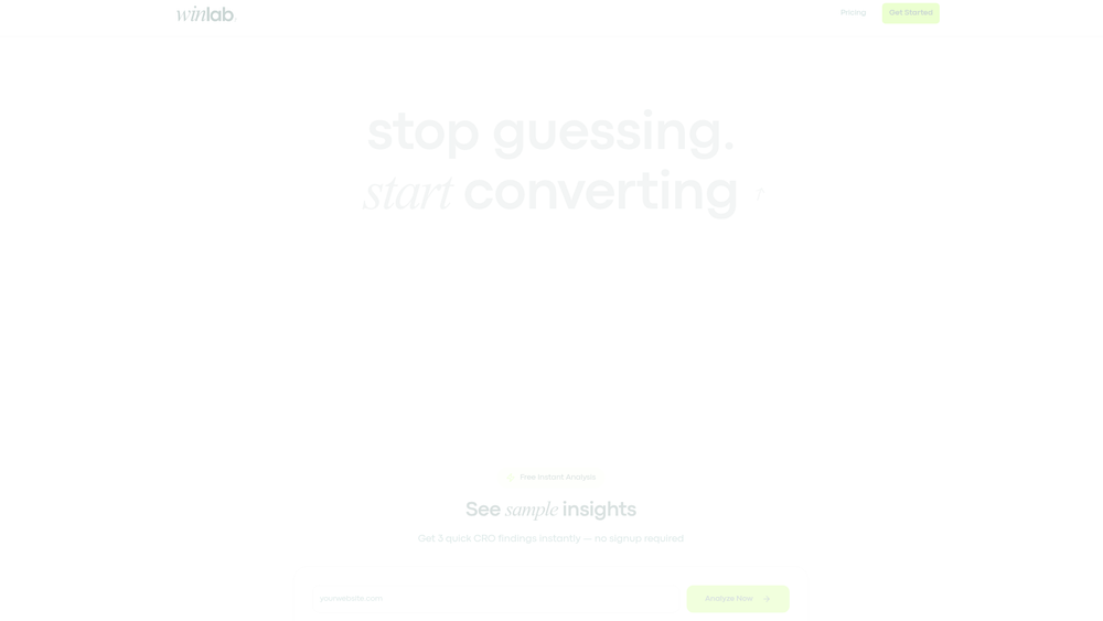 winlab is an AI-powered CRO tool that uses synthetic user simulations and predictive analytics to provide conversion insights without needing live traffic.